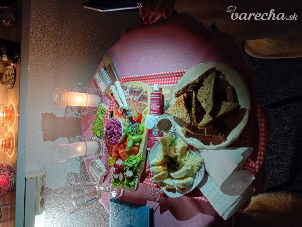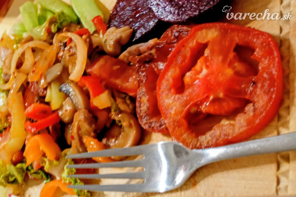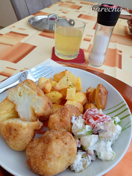 ... Syrové ražniči v cesnakovom cestíčku, zemiaky, zelenina