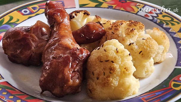 Maká a peče remoska. Květákové růžičky jsem pokropila máslem, posolila, pridala kuřecí paličky a zapla remosku. Po cca 40min uz to mizelo z talíře :-)