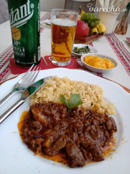Hovädzí "tokaň", tarhoňa, kompót
