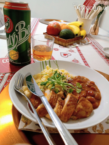 Kuracie mäso, lahodné maslové halušky, fazuľa 😋
