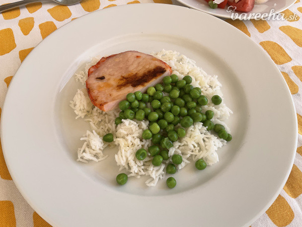 Trhane mäso so šampiňónami, restovana ryža, grilovaná paradajka