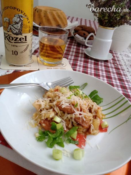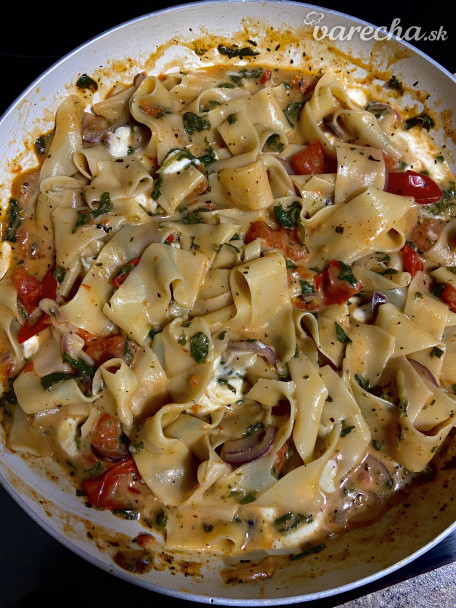 Dnes k obědu zbytek rajské omáčky s uzeným a těstovinou.