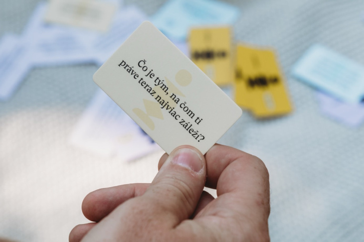 To sú otázky, ktoré v bežnom ruchu každodennosti nezaznejú, no keď sa ich opýta kartička, je to veľmi bezpečné, lebo to nie je žiadna pasca druhej strany. Kartička je neutrálna a vie priniesť tému, ktorá je zrazu úplne prirodzene medzi nami a môžeme sa deliť o svoje príbehy, prežívanie aj pohľady na život. Môžeme samých seba aktualizovať a dozvedať sa o sebe stále niečo nové, hoci sa poznáme celú večnosť a mysleli sme si, že už nie je čo objaviť.