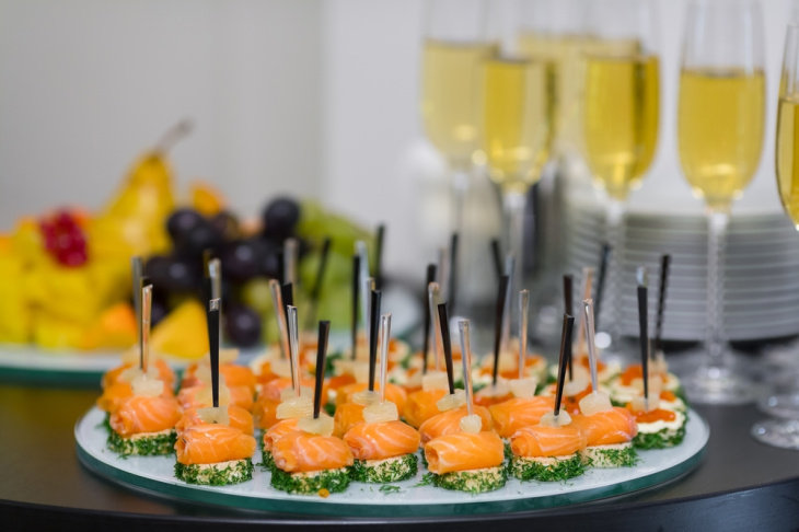 Okrem časového harmonogramu je dôležité si naplánovať aj ako budú ponúkané drobnosti veľké. To je takmer rovnako dôležité, ako vyzerajú a chutia. Pretože pre komfort hostí sa majú dať ľahko a pohodlne jesť, ideálne bez použitia príboru.Mali by mať preto takú veľkosť, aby sa dali zjesť na jeden, prípadne dva hryzy. Tam, kde je to vhodné, ich môžeme doplniť ozdobnými špáradlami, pomocou ktorých si hostia kanapku jednoducho vezmú. Pohostenie vo forme malých súst ocenia aj preto, že pri väčšom výbere môžu ochutnať z každého druhu.