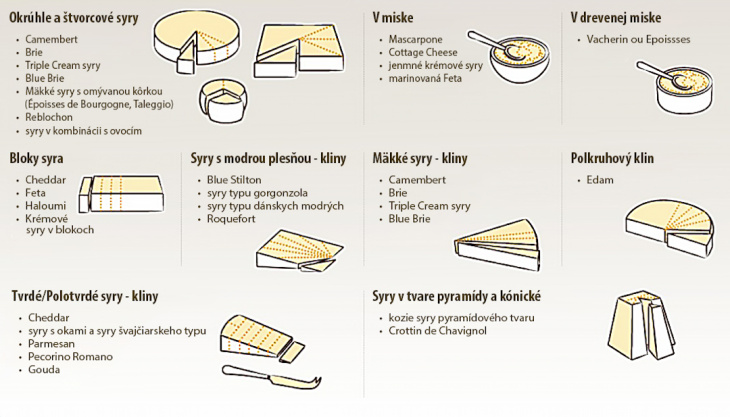 Na syrové pohostenie vám stačí tri až päť druhov syrov, ktoré bežne kúpite v slovenských obchodoch – eidam, gouda, ementál, niva, hermelín, parenica či oštiepok.