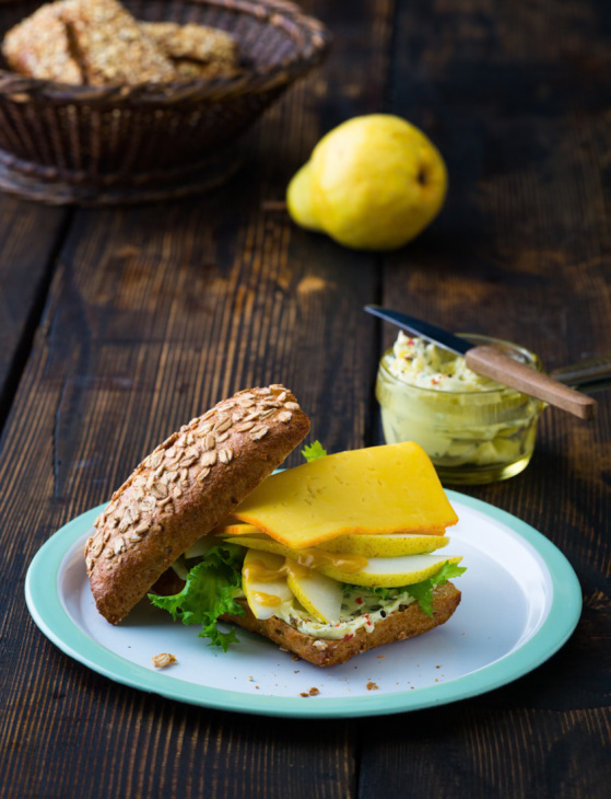 Hruška v burgri je možno menej tradičná, no veľmi chutná. Najčastejšie sa kombinuje s modrým syrom, karamelizovanými orechmi alebo pečeným kuracím mäsom. Ideálna voľba pre jesenné sezónne burgre.