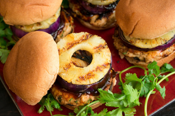 Grilovaný ananás je jedným z najčastejšie používaných druhov ovocia v burgroch. Hodí sa najmä k hovädziemu mäsu, slanine a pikantným omáčkam. Sladkosť ananásu zjemňuje mastnotu a zároveň prináša sviežu tropickú chuť.