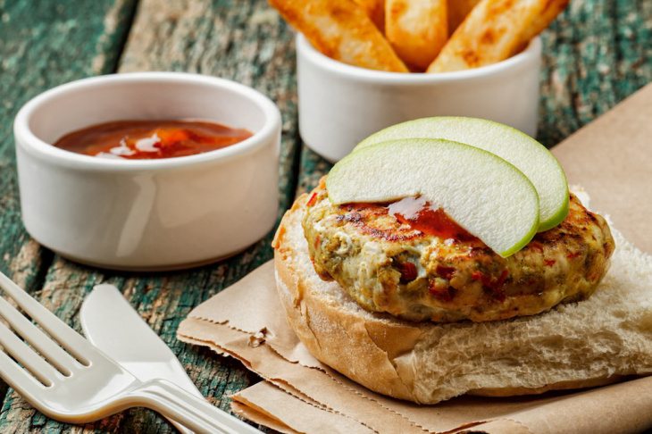 Natenko nakrájané jablko pridáva do burgrov chrumkavosť a jemnú kyslosť. Najlepšie funguje s bravčovým mäsom, syrom brie alebo karamelizovanou cibuľou.