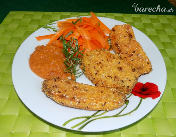 Bataty v chrumkavom obale s krémovým pyré a mrkvovými rezancami