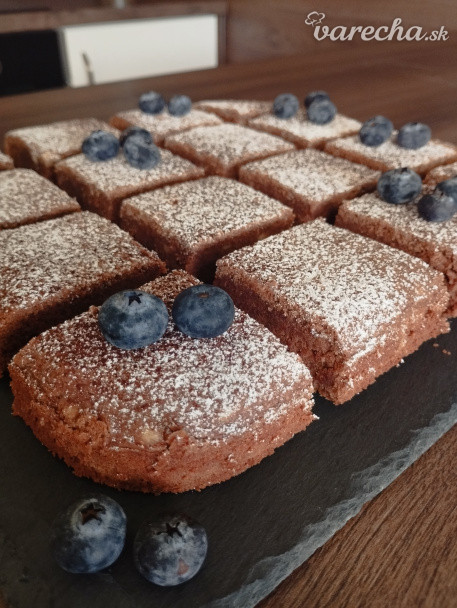 Pečieme v rúre vyhriatej na 180 °C asi 25 minút. Necháme krátko vychladnúť na plechu a potom koláč nakrájame na kocky. Podávame s mascarpone a podľa chuti aj posypané práškovým cukrom.