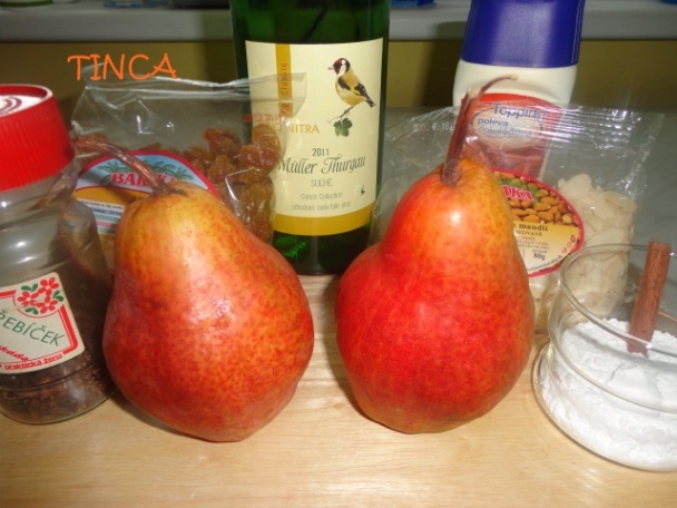 Pripravíme si suroviny. Počet hrušiek neuvádzam, ale rátame 1-2 ks/na osobu, dľa veľkosti.