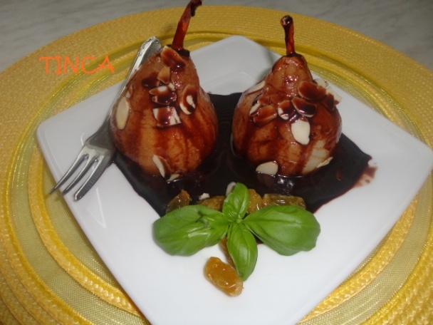 RADY NAVYŠE: Miesto bieleho vína môžete použiť aj červené, získajú krásnu farbu. Ak nemáte radi hrozienka, tak použite napr. brusnice. Ako výplň hrušiek poslúži aj čerstvé bobuľovité ovocie napr.čučoriedky. Ak nie ste v časovej tiesni, pripravte si čokoládovú polevu a nechajte stuhnúť. Ja som použila čokoládový toping, aj s ním sú výborné.