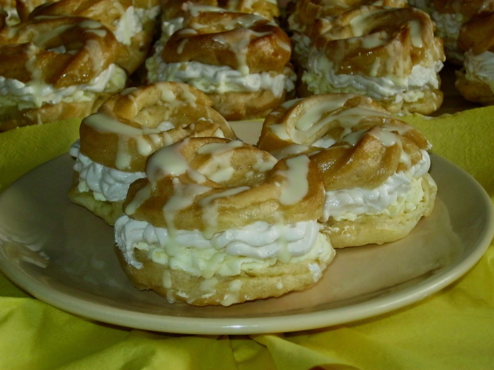 A čuduj sa svete, vydarili sa" Krááásne naskočili. Len ma ruka bolela, kým som tých 10 minút miešala cesto :o)))...ale oplatilo sa. Hotové mali priemer 7 cm a vysoké boli 5 cm /pred naplnením/. Dobre? Vyšlo mi 60 kúskov...na jeden plech som "nasúkala" iba 16ks. A piekla som v normálnej rúre pri tých 220 st. 25 minút, s rajničkou vody :o)) No, a ten krém, je tiež supiš! Len by si mi mohla ešte poradiť, ako ich skladuješ ty, aby neboli príliš zmäknuté alebo prisuché. Ja ich prikrývam a odkrývam igelitovou fóliou, podľa stavu. :o))))) Chcela by som ich robiť v lete na svadbu, ale sa bojím, že v uzavretej nádobe v chladničke sa mi rozmočia. Díky za perfektný recept aj za radu.